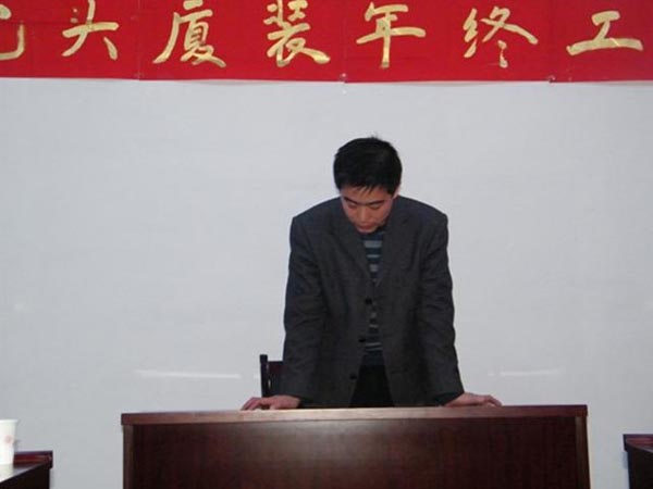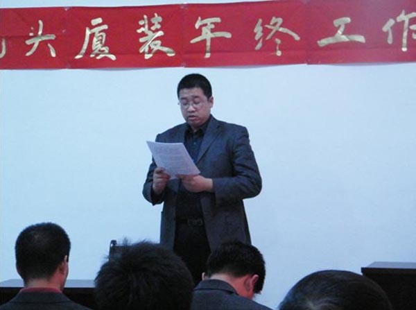 隨著新年鐘聲的臨近,我司于2010年12月31日,下午13:30分在公司三樓會議室召開了2010年年終工作總結(jié)及優(yōu)秀員工表彰大會。此次會議目的既是讓大家對公司成立以來的熬人業(yè)績、明年的整體發(fā)展趨勢、任務(wù)指標,以及公司對每位職工工作的肯定做了一一講解。營造全體員工團結(jié)凝聚、以廠為家、共同奮進的氛圍,回顧過去我司做出了當(dāng)年建廠、當(dāng)年投產(chǎn)、當(dāng)年銷售的令人矚目成就。通過此次會議,公司全體同仁堅信在大家共同努力下,我司產(chǎn)品必能遍布內(nèi)蒙古中西部及陜北地區(qū),并且在所有同行當(dāng)中永居鰲頭,成為全內(nèi)蒙、全國、全世界第一品牌。