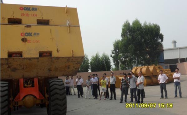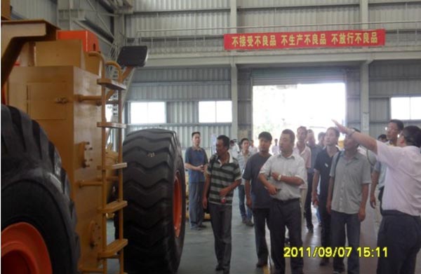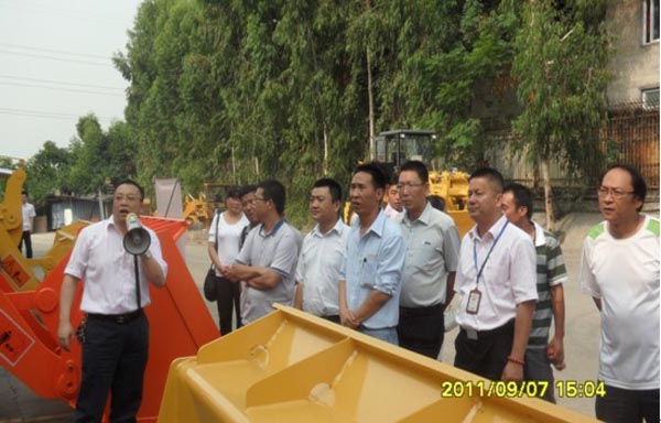 2013年9月7日,昆明客戶及昆明正合工程機(jī)械有限公司區(qū)域經(jīng)理一行17人蒞臨廈門(mén)市裝載機(jī)有限公司生產(chǎn)現(xiàn)場(chǎng),參觀公司產(chǎn)品的生產(chǎn)流程、公司研發(fā)的最新產(chǎn)品及樣機(jī)表演。